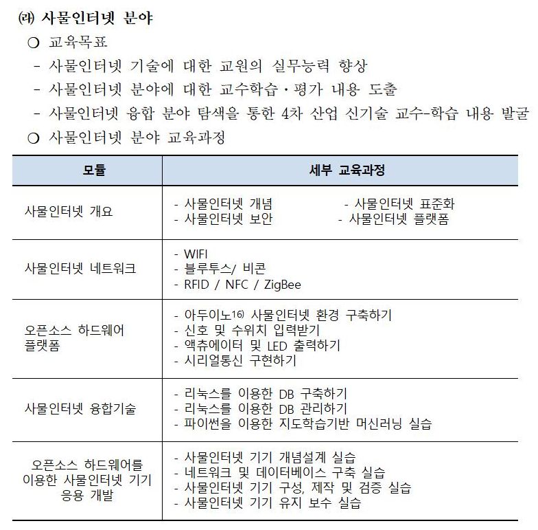 또한, 교육목표에 적혀 있는 사물인터넷 융합 분야 탐색을 통한 4차 산업 신기술 교수-학습 내용 발굴 등