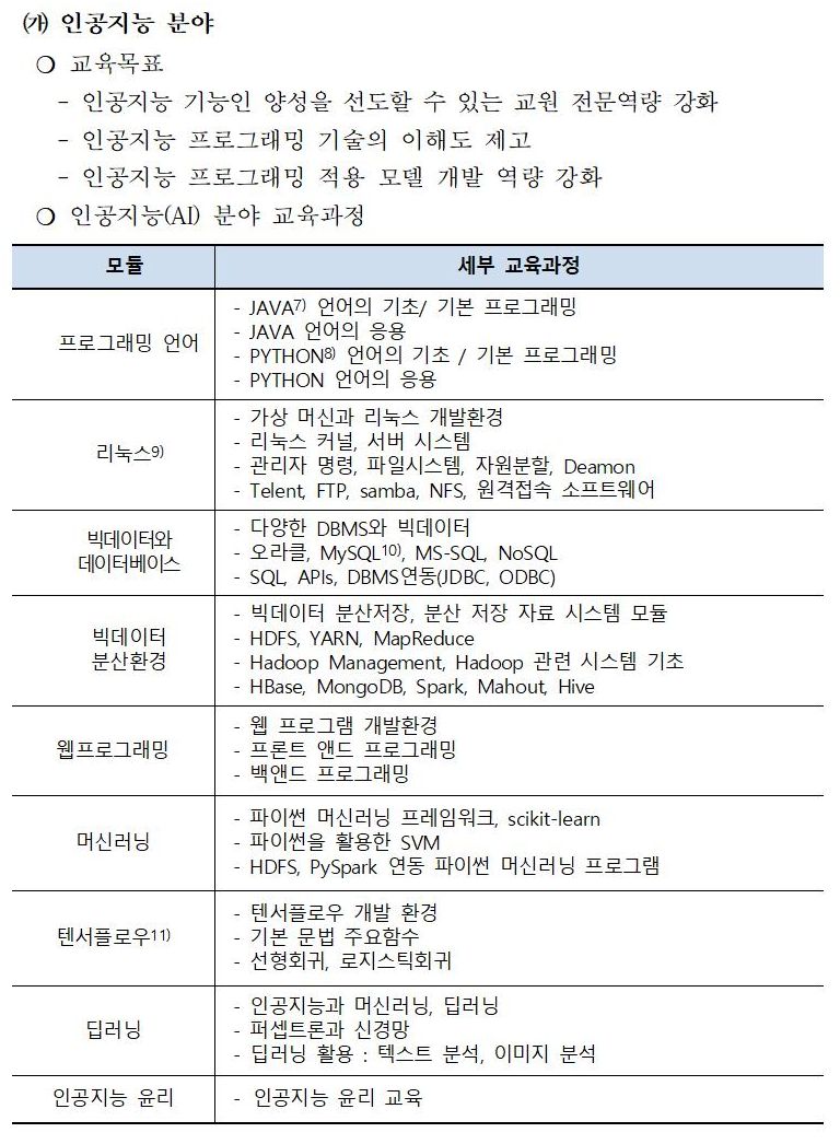 단순히 인공지능 분야에 많이 사용하는 OS와 프로그램 언어 그리고 DB 등에 대한 교육만 있는 것이다.