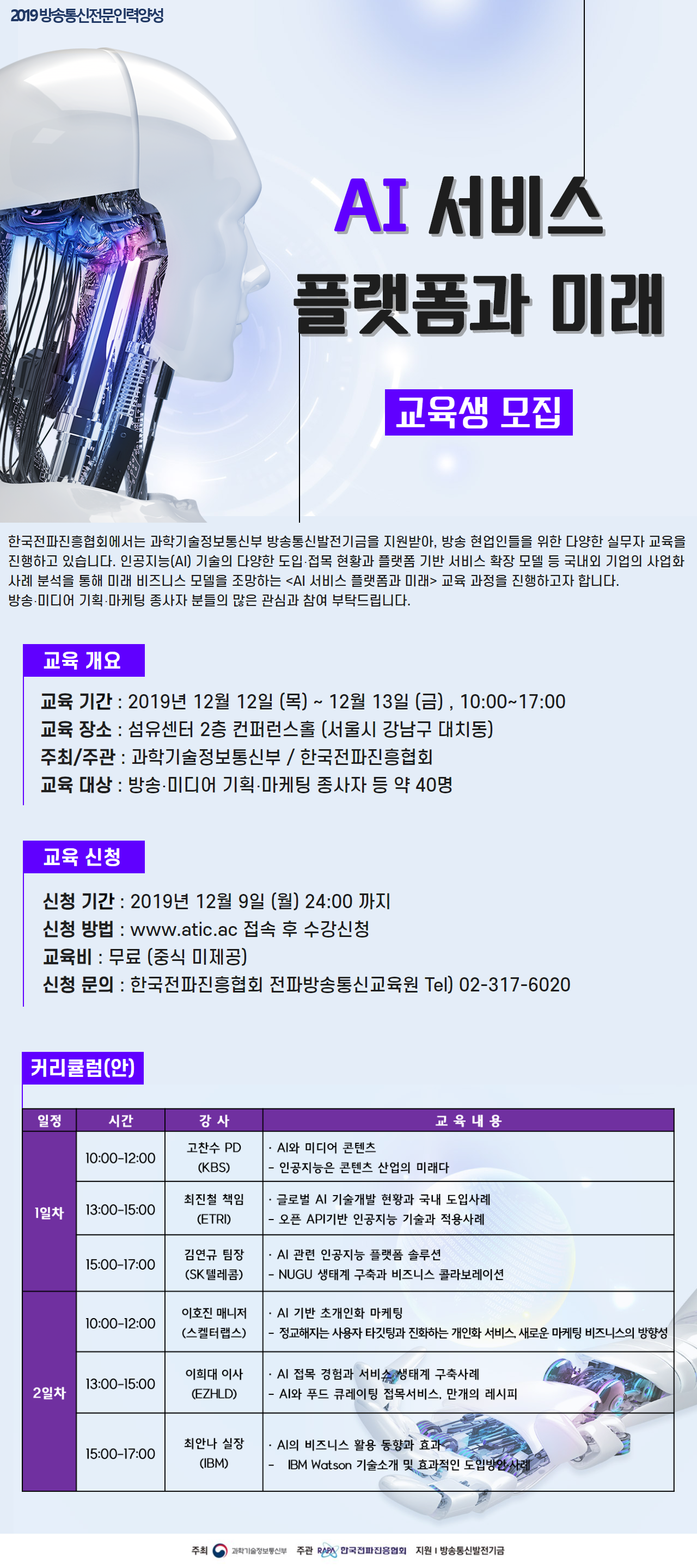 2019 방송통신전문인력양성 AI서비스 플랫폼과 미래