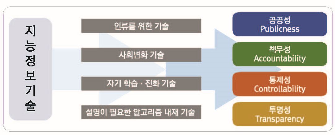 - 지능정보사회는 인간의 존엄과 안전을 지키고 인류의 보편적 가치를 실현하는 방향으로 발전해야 한다.