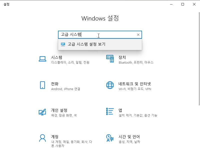 10. 그 다음 파이썬이 구동할 수 있도록 설정을 하자! 우선 시작버튼 - 설정 - 설정 검색 창에 고급 시스템 설정 보기를 쳐서 선택하자