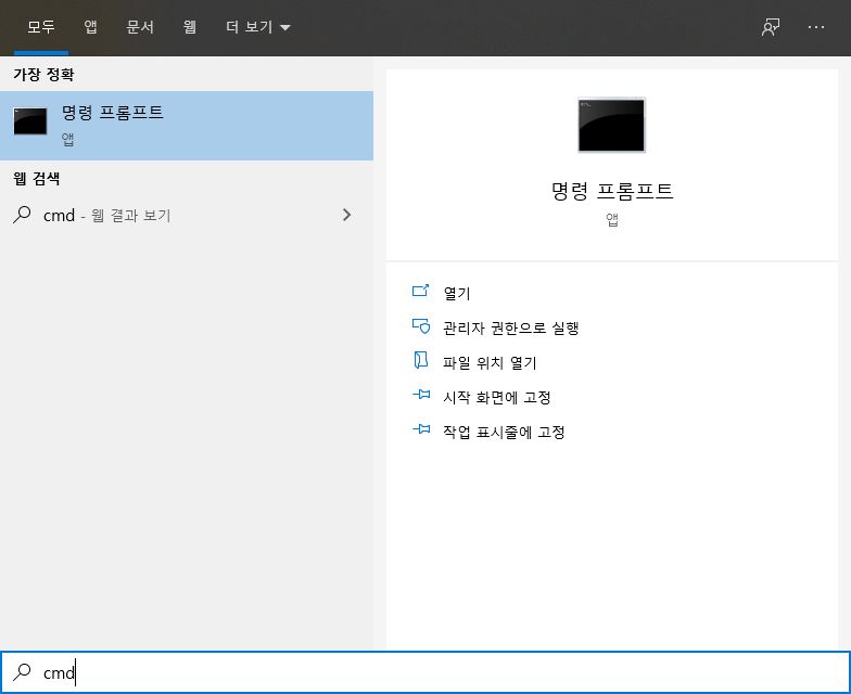 6. 설치를 완료했으면 명령 프롬프트(CMD - Command Prompt)를 열어보자