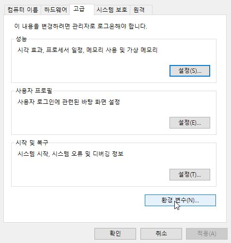 11. 시스템 설정이 나왔으면 고급 탭에서 환경 변수를 선택하자.