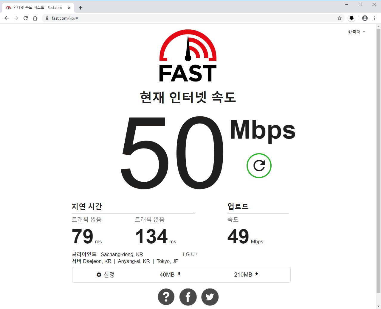 LG U+ 인터넷망을 사용하고서도 속도가 평균적으로 이 정도 나오는 상황이고 Netflix를 시청하는데도 전혀 문제가 없었다.