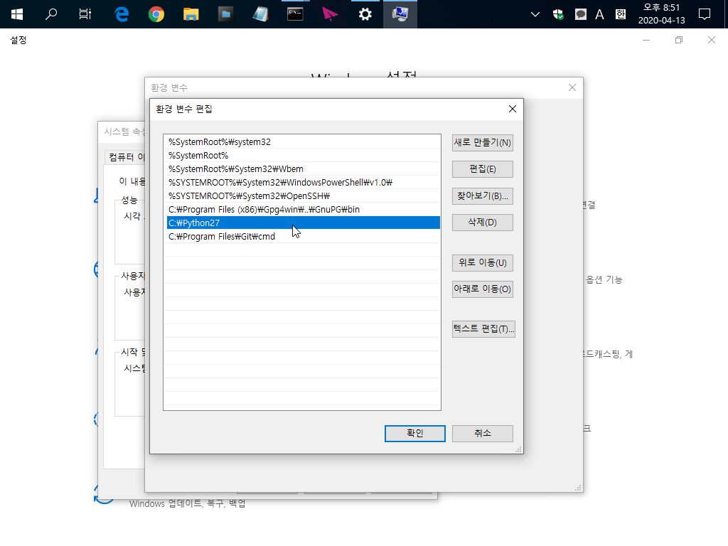 12. 환경변수에서 시스템 변수의 path에 C:\Python27 을 추가하자! (개인적으로 몰라서 사용자 변수의 path에도 난 추가했다.;;;