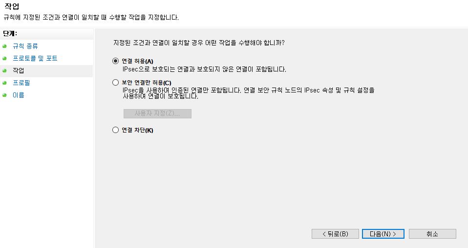 일단 방화벽 관련 설정은 모두 마쳤다.