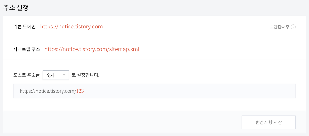 사이트맵 주소는 https://블로그 주소/sitemap.xml 이며 티스토리 > 블로그 관리센터 -> 블로그 -> 주소 설정에서 확인 가능하십니다.