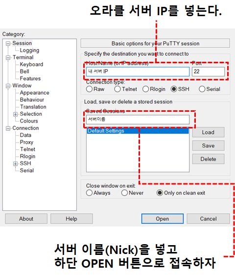 7. 키를 불러들인 후 IP입력 후 접속 세션명을 입력합니다.