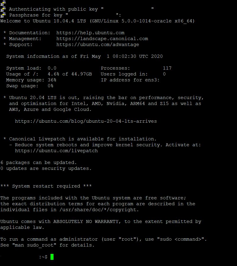 8. PuTTY로 오라클 클라우드 접속한 화면