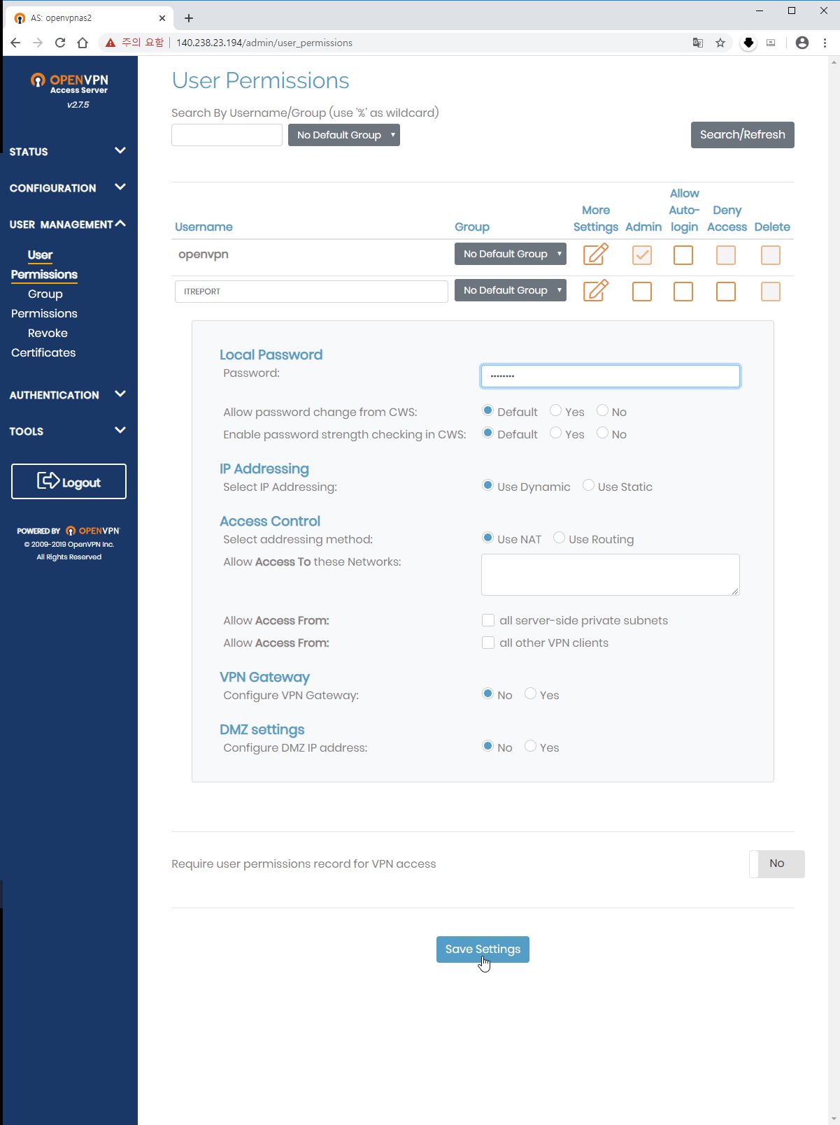기존 openvpn의 암호도 변경할 것을 추천해드립니다.