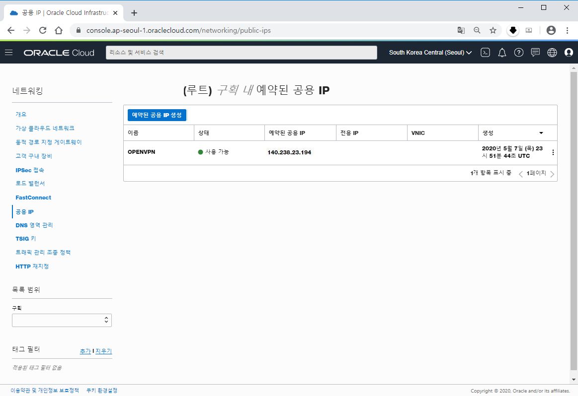 | 오라클 클라우드 OPENVPN 서버 셋팅하기 (전용 마켓플레이스 이용하여) (6) | 2020.05.11 |