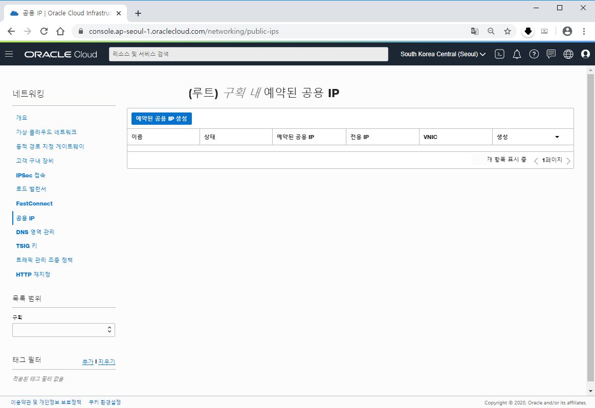 오라클 클라우드에서 공용 IP를 예약하고 그 IP를 서버에 셋팅하는 방법을 소개하겠습니다.