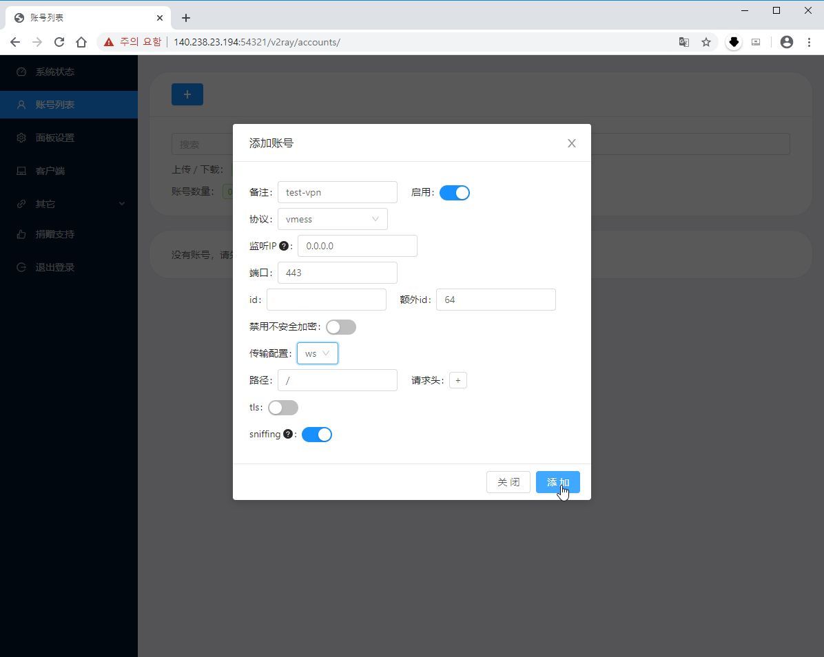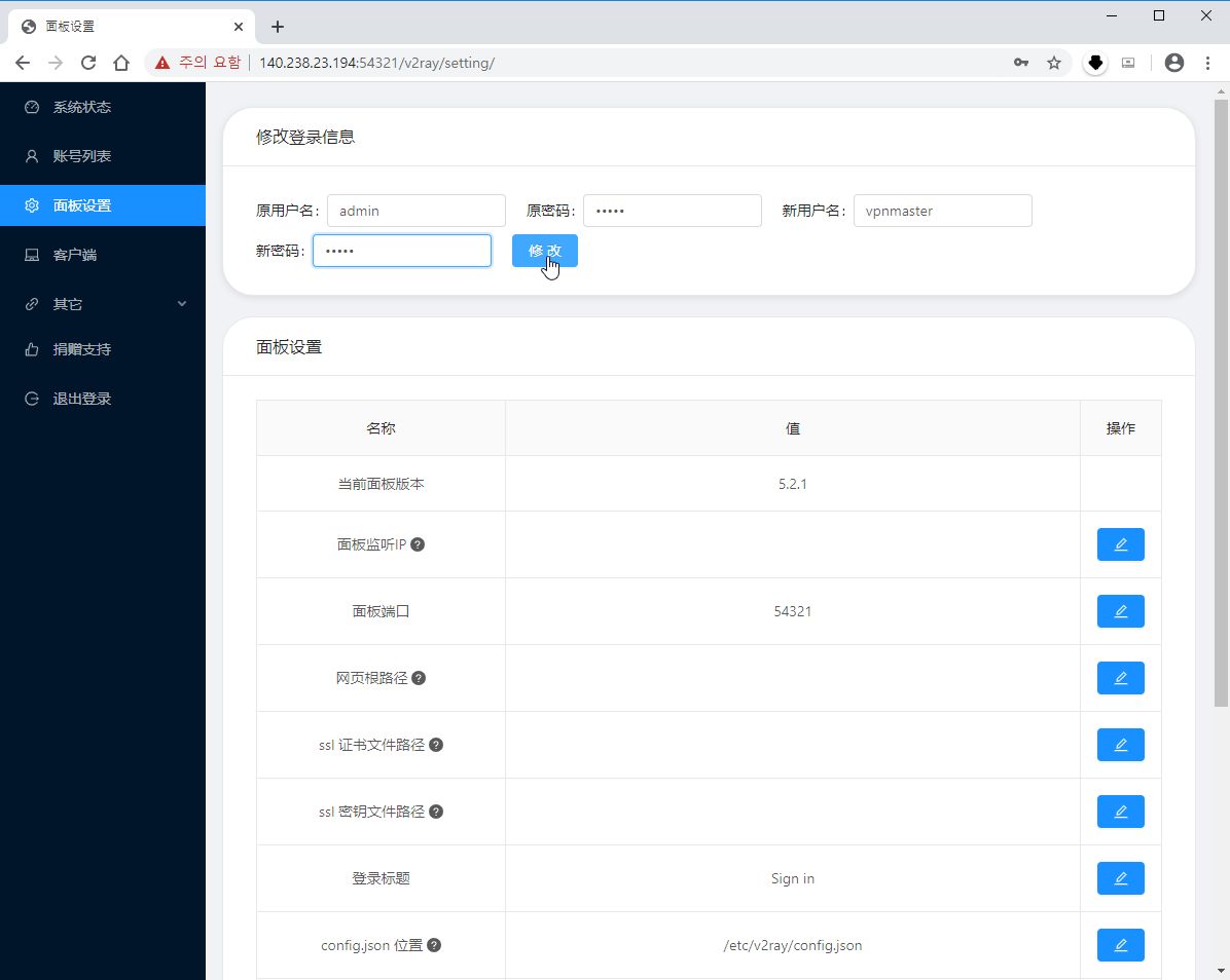 E-1. 이제 v2Ray의 웹 관리화면에 접속합니다.