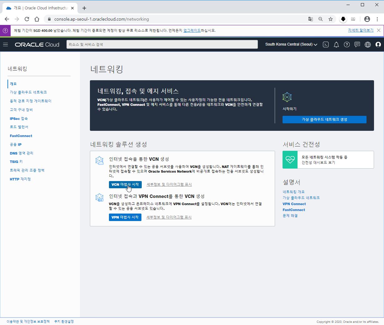 A-1. 우선 오라클 가상 클라우드 네트워크(VCN)를 설정해야 합니다.
