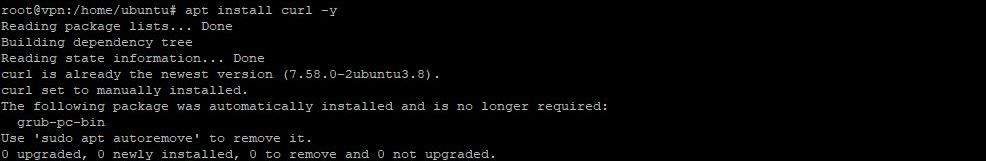 root@vpn:/home/ubuntu# apt install curl -y