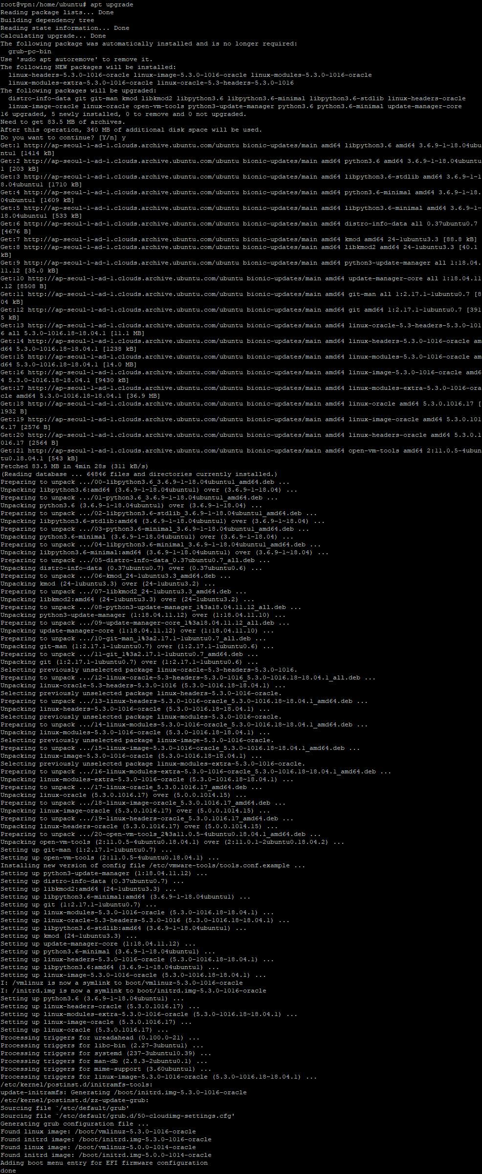 root@vpn:/home/ubuntu# apt upgrade