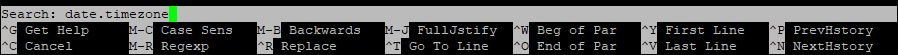 아래와 터미널의 화면이 나오면 CTRL + W를 누르면 검색창이 나오며 date.timezone 을 입력해 검색을 실행합니다.
