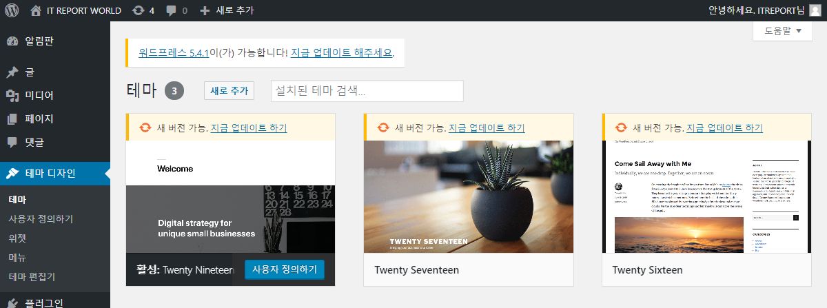 이제 마지막으로 워드프레스 업데이트입니다.