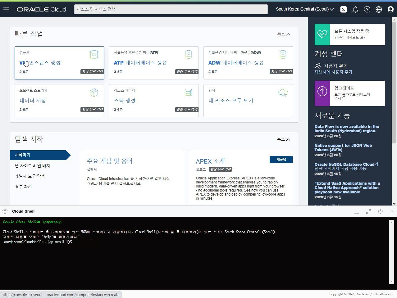 오라클 클라우드 - Cloud Shell을 이용하여 PuTTY 없이 접속하기