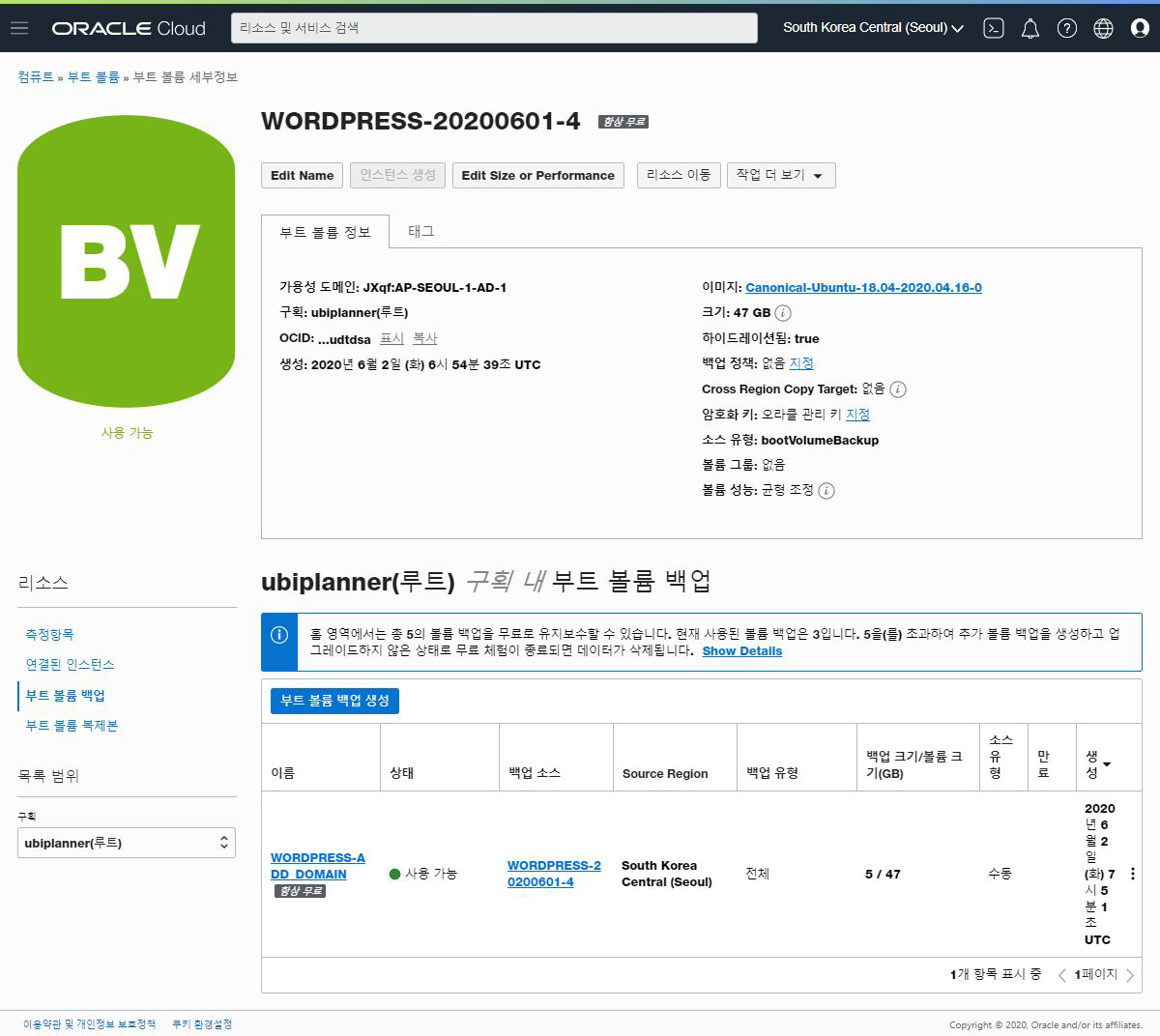 | 오라클 클라우드 BOOT VOLUME - 2. 부트 볼륨 백업하기 (7) | 2020.06.12 |